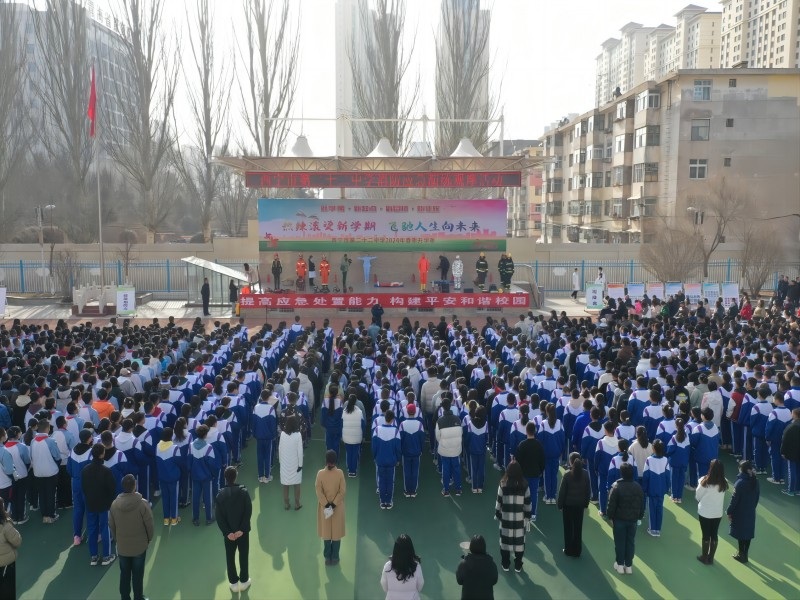 在二十二中学,演练活动分为火灾发现与报警、紧急疏散、初期火灾扑救、安全集结与清点人数等多个环节。模拟设置“发现火情、拉响警报”“报告火情、启动预案”“应急处置、紧急疏散”多个场景;“人数清点、人员搜救”“医疗救护培训”“消防知识培训”3个现场演示培训。演练前,消防救援人员分班级对如何避险、撤离、疏散、自救互救方法和技能进行了专项培训,对各岗位老师应急职责做了明确分工。在演练过程中,学校师生们按照预定的演练方案,迅速响应,低头弯腰,有序疏散,沿着疏散通道快速撤离到安全区域。同时,学校的微型消防站也迅速行动,使用灭火器、灭火毯等器材进行初期火灾扑救。全体教职工分工明确、有条不紊,同学们沉着冷静、快速有序地撤离,在三分钟内全校师生全部疏散至安全区域。随后,青海省康复医院专业医疗人员为师生讲解演示心肺复苏操作步骤方法,总队消防指战员现场为师生讲解演示干粉灭火器的使用方法和注意事项。